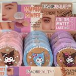 Caja con 12 Polvo Compacto, apertura acabado HD. Larga duración. Kuromi. Favorbeauty.